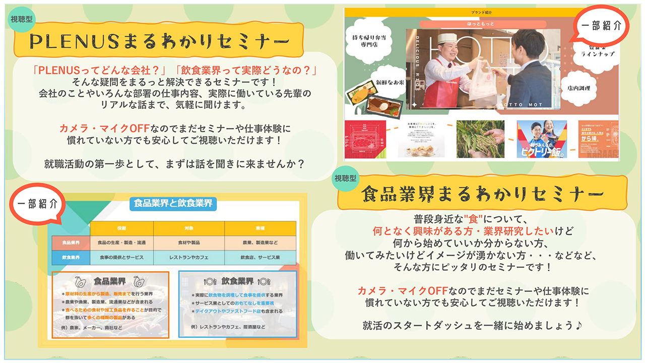食品業界の実践的な知識を学びたい方や、プレナスのことを詳しく知りたい方は、ぜひ仕事体験にご参加ください!